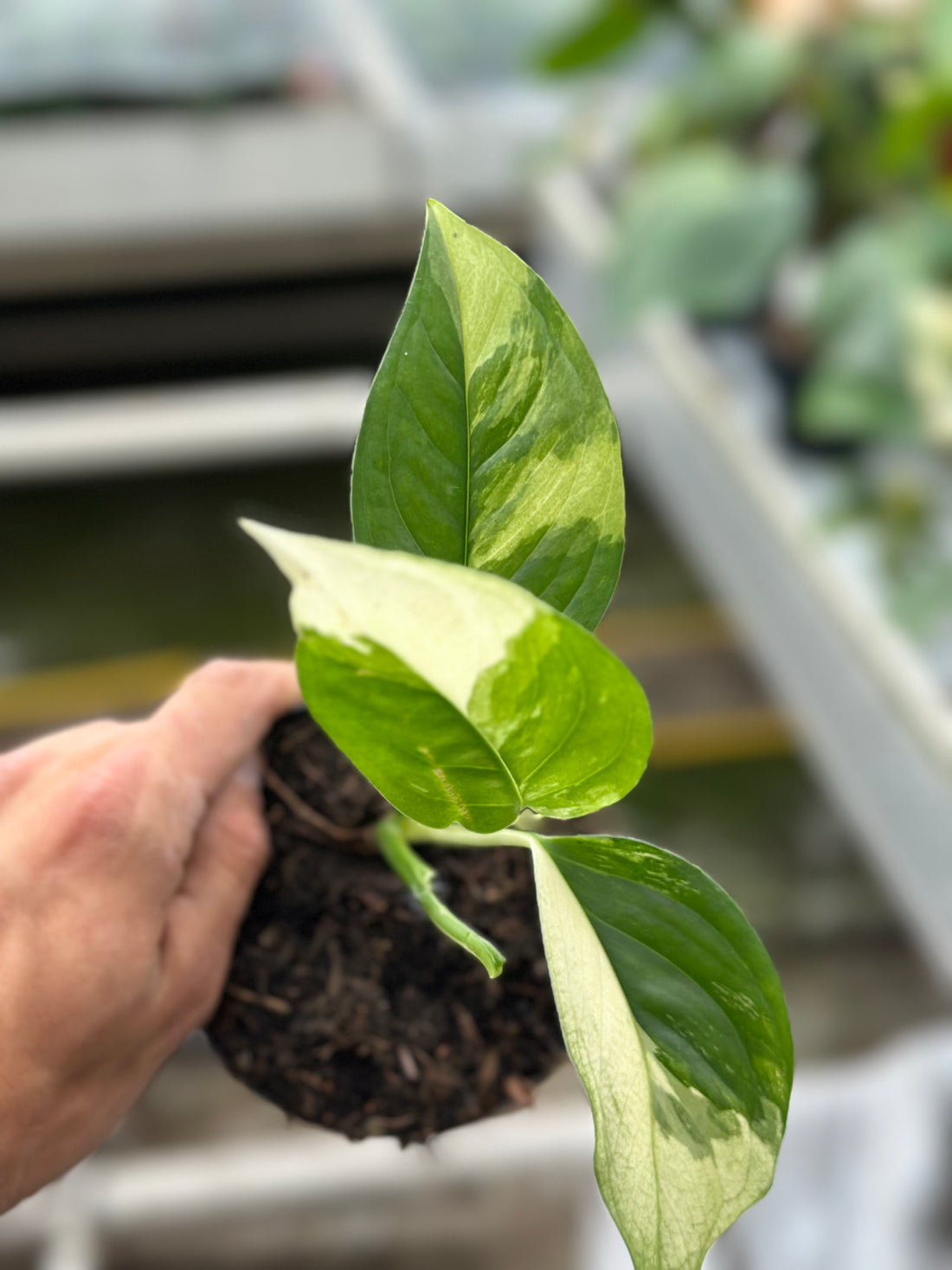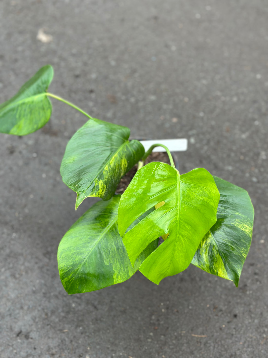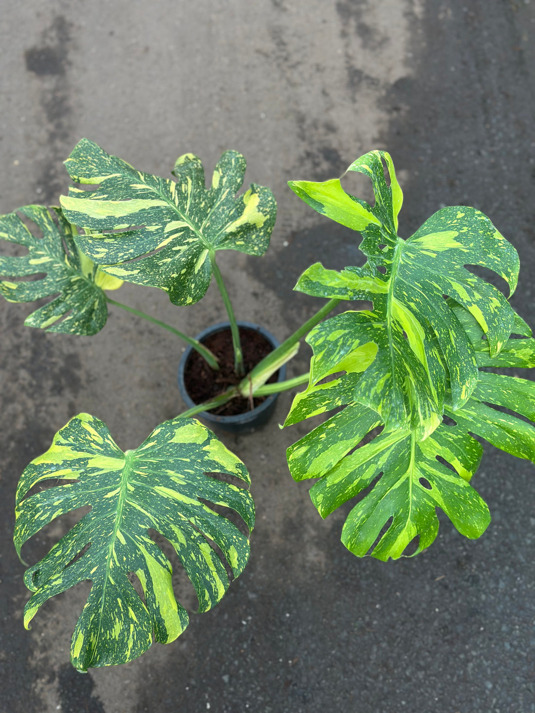 A rare and striking Monstera with creamy white, soft green, and marbled variegation. Each leaf...
