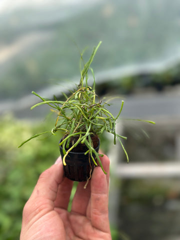 The Hoya Retusa is a true standout in the Hoya family. With its thin, grass-like leaves and quirky growth pattern, it's a charming and unusual addition to any plant collection. This low-maintenance plant thrives in bright, indirect light and may surprise you with delicate, fragrant blooms when happy. Perfect for hanging planters or adding a touch of green to shelves and corners.