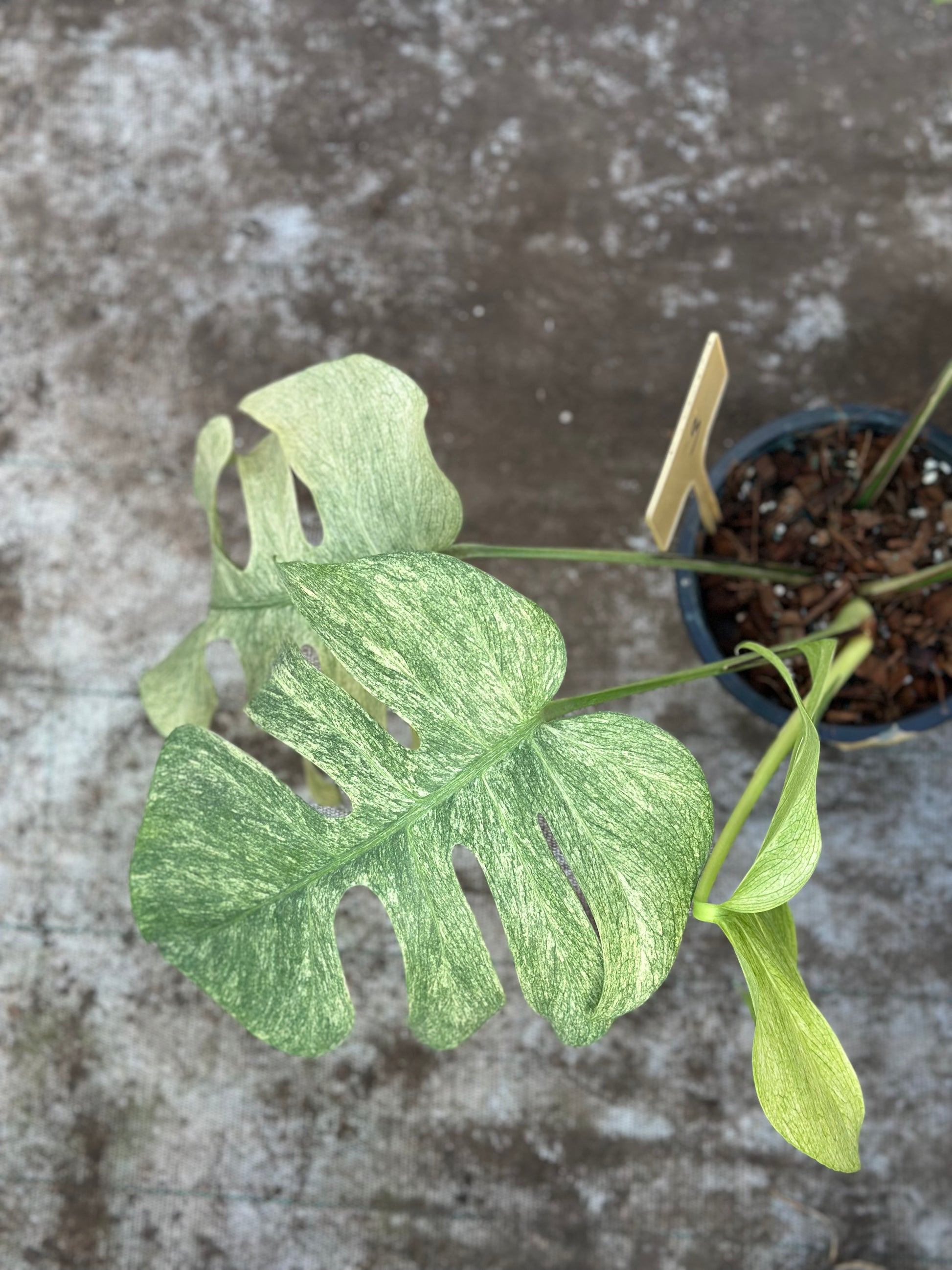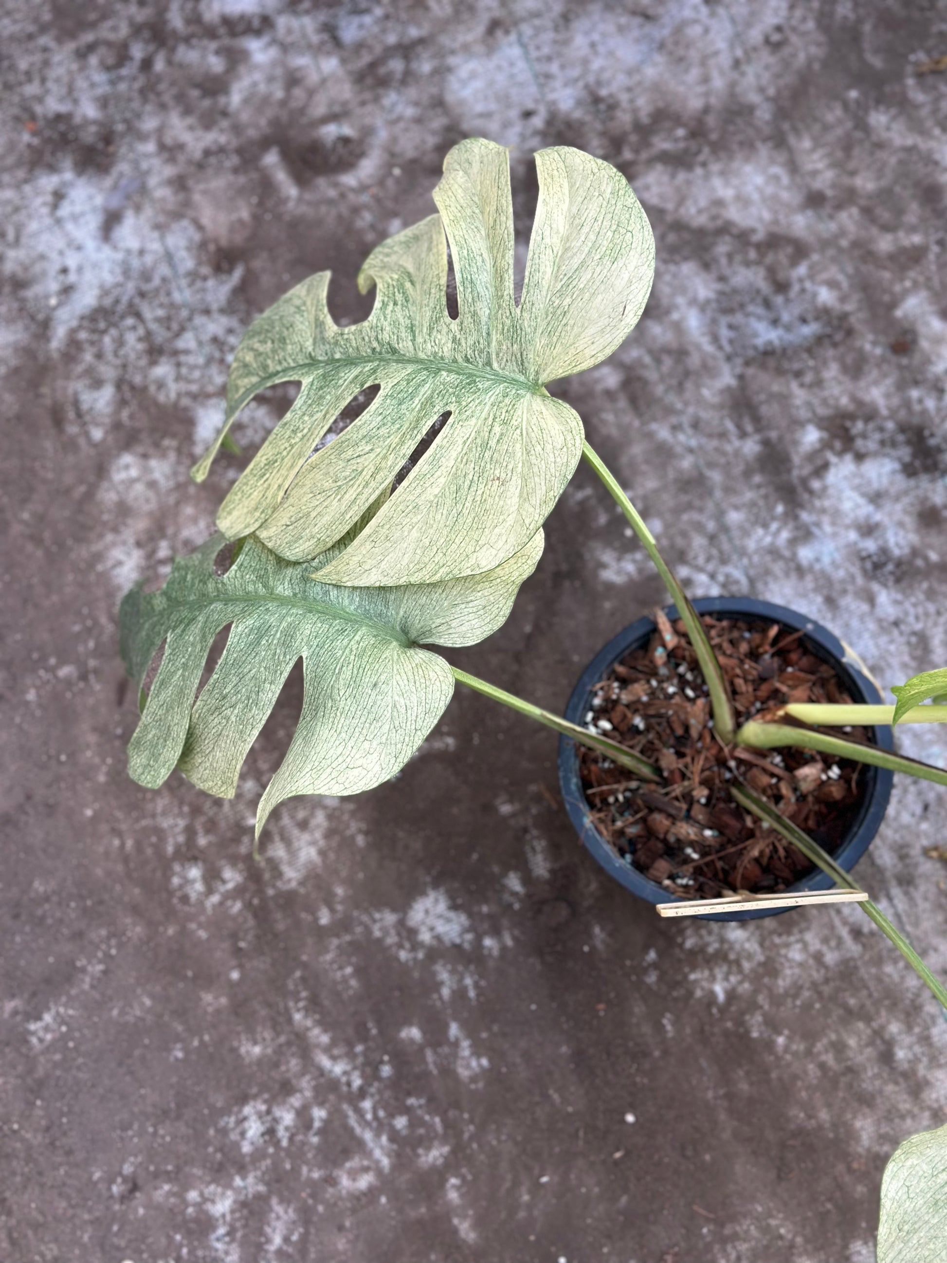 Monstera Full Mint is prized for its ultra-light mint variegation, often covering large portions of the leaves in soft, icy green to almost white tones. The contrast between the pale variegation and subtle green veining creates a clean, high-end look that stands out even among premium variegated Monsteras. Each leaf is unique, and this specific plant cannot be replicated.