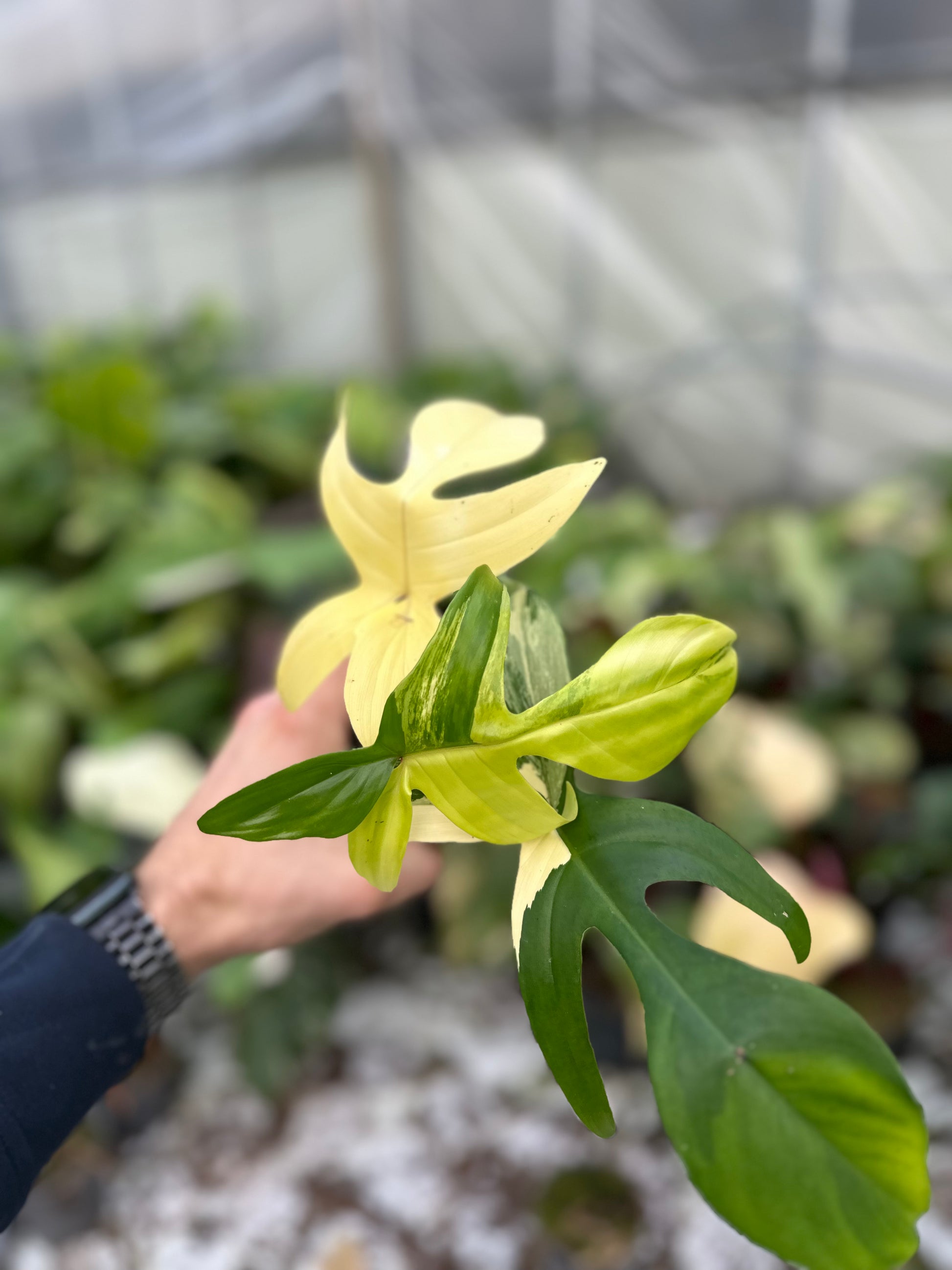 The Philodendron Florida Beauty is a true showstopper with its dramatic lobed leaves and stunning variegation in shades of creamy yellow, lime, and deep green. Each plant is unique, and now you get to choose exactly the one you’ll receive!